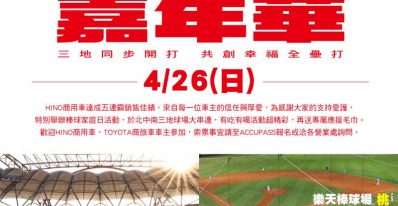 2026年GO!GO!HINO嘉年華4/26於北中南球場同步熱血開打,邀約全台車主同樂應援,共創幸福全壘打