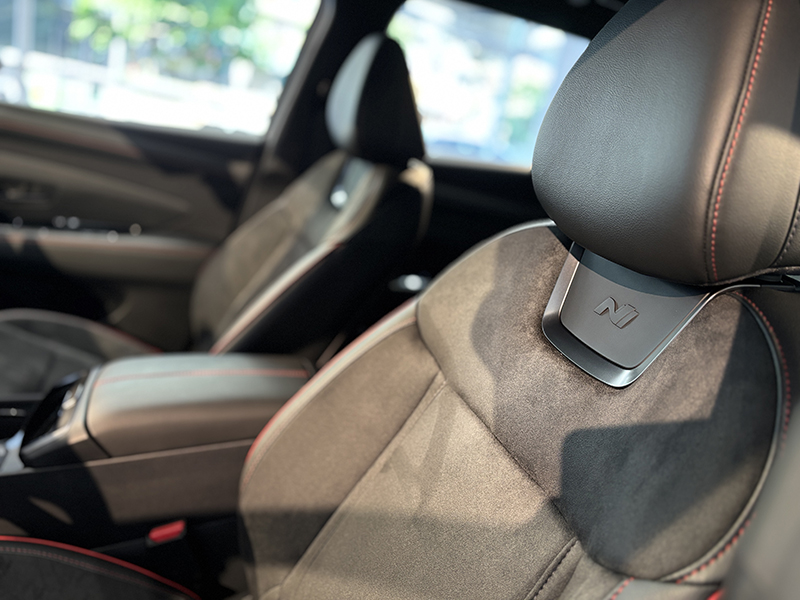 座艙則以紅縫線麂皮運動座椅、專屬方向盤與排檔桿、金屬踏板與黑化車頂,營造熱血卻不失質感的駕馭氛圍。搭載Smartstream 1.6 Turbo引擎與全球首創CVVD連續可變汽門持續系統,輸出達180ps/27kg-m,結合7速DCT雙離合器變速箱,不僅加速暢快,更兼顧平均14.9km/L的油耗效率。