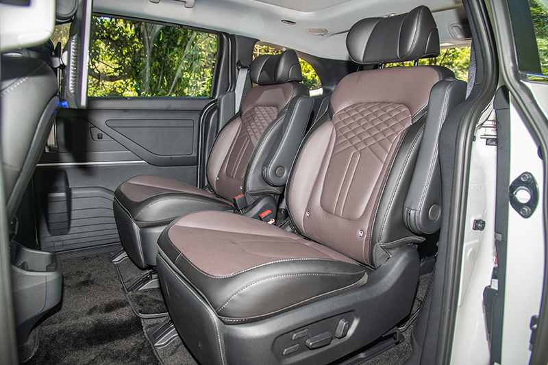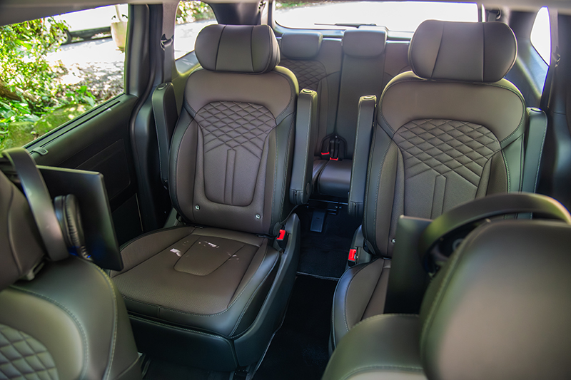 第二排的VIP皇家座椅,是大家人最愛的地方。電動調整、腳靠、加熱與通風功能一應俱全,坐上去真的就像飛機商務艙。相信另一半甚至開玩笑說:「這比家裡的沙發還舒服!」第三排雖然空間稍微有限,但在把第二排調整到合適位置後,兩個小朋友還是能輕鬆坐下。