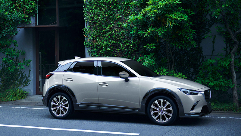 MAZDA 旗下日系美型休旅 MAZDA CX-3,全新推出 2026 年式 20S Signature 車型,延續魂動美學簡約語彙,流線車身勾勒俐落姿態,結合具自動水平調整的 LED 頭燈輔以亮銀色前保桿與車側飾條,營造洗鍊精緻的視覺風格。曜黑環車護板以層次分明的深邃對比,襯托立體且具張力的美學氣韻,搭配 18 吋雙色鋁合金輪圈,在光影流轉間綻放鮮明動態節奏,為整體外觀注入活力與自信的運動氣息。