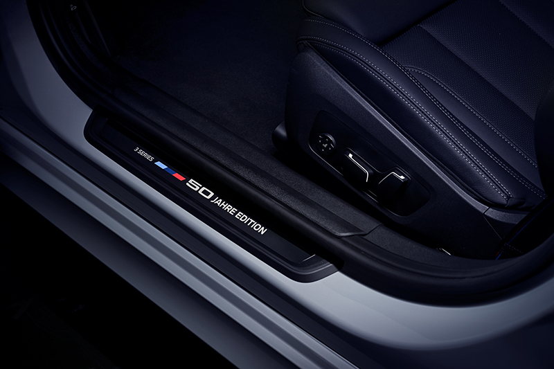 - BMW 320i Touring 50 Jahre 限量版以新世代設計語彙勾勒出全面進化的豪華科技座艙,專屬50 Jahre門檻飾板象徵半世紀傳奇血統的榮耀傳承;車室中央鑲嵌50 Jahre 中控銘牌,並採用M 碳纖維飾板,以動感紋理呼應BMW 3 系列純粹且熱血的駕馭精神。搭配M縫線安全帶,細節之中盡顯運動氣勢與尊榮質感的完美平衡。