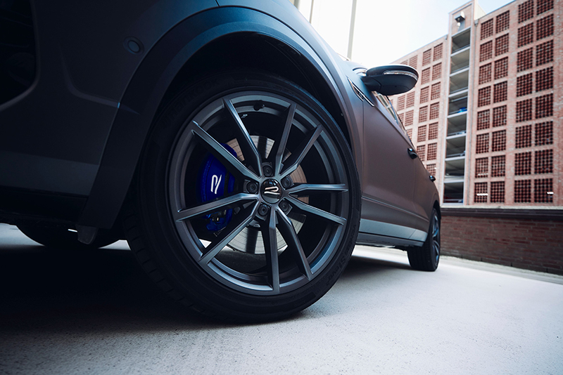The new T-Roc R極緻版設計俐落簡潔,銳利折線與R 專屬外觀 / Black Style 黑化套件刻劃氣勢萬鈞的戰鬥姿態,車頭具R 專屬運動化前保桿,以水箱護罩連貫式 LED 定位燈連結兩側IQ.LIGHT 智慧燈組:LED Matrix 矩陣式頭燈和 DLA 動態頭燈自動切換,前方與側邊綴上辨識度極高的R 徽飾及R專屬銘牌,自黑化風格後視鏡罩、湛黑車頂行李架,至黑化風格窗框、後方深色隱私玻璃與碳纖維風格 C 柱設計,無處不以細節展現強烈張力和卓越質感,流線輪廓延伸至車尾斜背造型與LED高亮度燻黑尾燈(附動態轉向指示燈),由運動化雙邊四出排氣尾管及黑化風格排氣飾框勾勒出霸氣背影,此次新增R 極緻版專屬套件更是如虎添翼,純粹而具未來感的「金屬流光銀」車色,搭配專屬 19 吋 Pretoria 鋁合金輪圈,外觀簡約洗鍊卻蘊藏強勁動能的反差魅力讓人愛不釋手,輕鬆悠遊於日常都會和帥氣跑格之間。而由台灣福斯汽車初次在台獻上的Volkswagen R部門限定色,嶄新「霧影消光灰」車色套件,沉穩大器的身姿低調而高貴,佐以黑色車門把手畫龍點睛,流露與生俱來無法掩蓋的剛烈鋒芒,展現非凡個人品味同時強化運動操駕體驗。