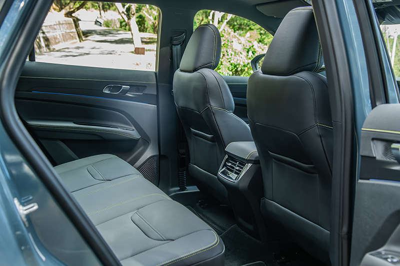 後座乘坐空間確實數據很好,又有平整式果嶺讓後座乘客有很好的舒適空間,後座膝部空間其實充裕,頭部空間也不侷促,看起來應該是一台「對家人很友善」的車款但坐下去會發現:椅墊偏短、偏軟腰部支撐不足椅背角度雖可調,但整體支撐依然偏弱,長途乘坐容易腰痠,在蜿蜒的山路,後座乘客會覺得身體被推來推去。家庭 SUV 的定位,後座舒適性應該是最重要的,但 Territory 在這點上反而顯得不夠到位。