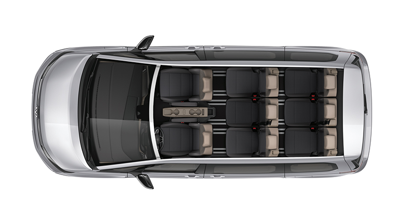 Multivan車型皆標配七顆環艙氣囊,包含雙前座SRS氣囊、雙前座SRS側氣囊、雙前座與乘客艙SRS側氣簾,以及駕駛艙中央SRS氣囊,有效降低撞擊對前座乘員造成的傷害。