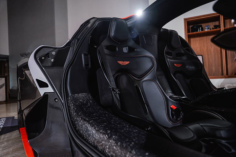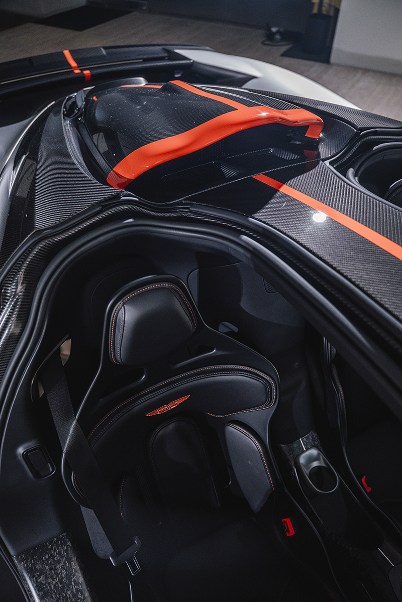 本次展出車輛選配多項專屬客製化細節,包含Q by Aston Martin Spirit Silver活力銀漆色、活躍橘外觀塗裝、亮面交織斜紋碳纖維外觀套件、消光鈦銀色鍛造鎂合金輪圈等外觀細節,搭配滿佈鍛造碳纖維的內裝與輕量化桶椅,進一步強化其賽道導向的視覺張力與收藏價值。Valhalla 不僅展現品牌在性能工程上的巔峰實力,更是一件專為少數藏家而生、足以代表 Aston Martin 的劃時代傑作。