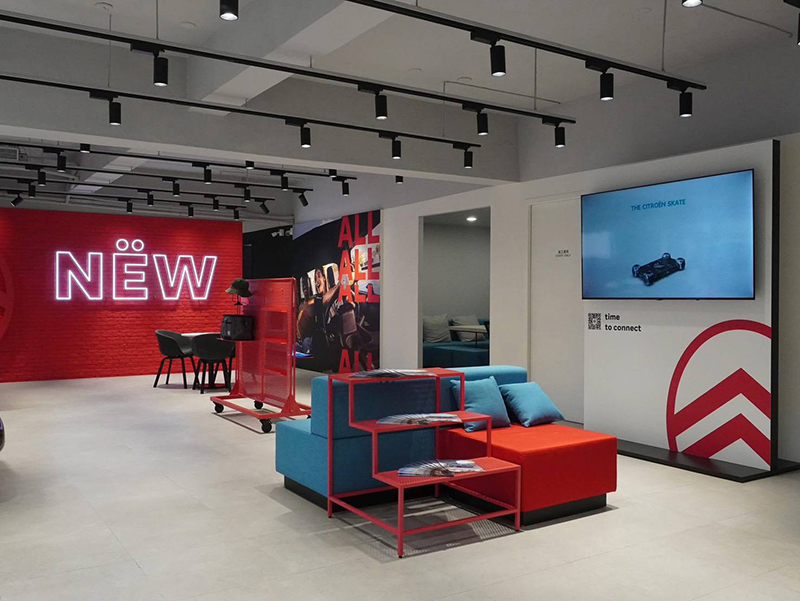 在整體建築與空間規劃上,「桃園旗艦品牌中心」全面依循 STELLANTIS BRAND HOUSE 的核心設計精神,於同一場域中分別呈現 Alfa Romeo、CITROËN、Jeep® 與 PEUGEOT 各自專屬的品牌識別與視覺語彙,建立清楚而獨立的品牌界線,同時兼顧整體一致性與國際品牌質感。建築立面以挑高黑色主體為設計基調,結合 STELLANTIS 集團代表性色彩系統,透過比例、材質與光影層次的精緻拿捏,使整體外觀在沉穩中展現精品化質感,充分體現全球品牌旗艦據點所應具備的現代與高端氛圍。