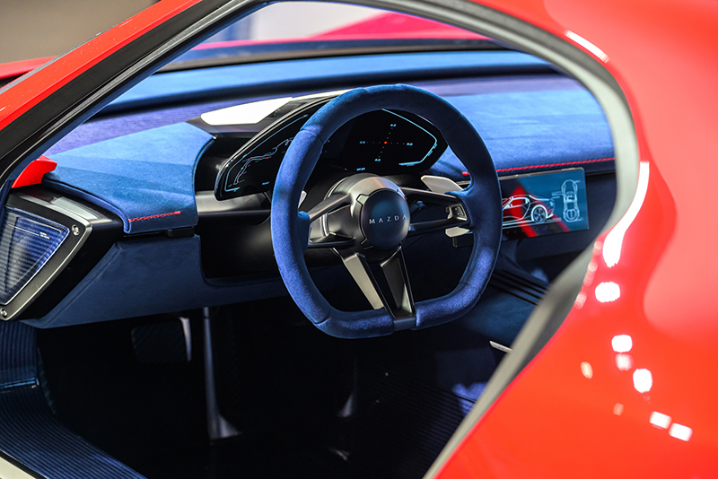 動力架構方面,MAZDA ICONIC SP 搭載 MAZDA 獨創的雙轉子增程電動系統,以轉子引擎作為發電來源,結合電動馬達驅動後輪,最大輸出可達 370PS。同時,憑藉轉子引擎輕量且結構緊湊特性,為車輛配置帶來高度彈性,進而實現低重心與前後 50:50 理想車重分配,成就 ICONIC SP 精準操控與優異動態表現。