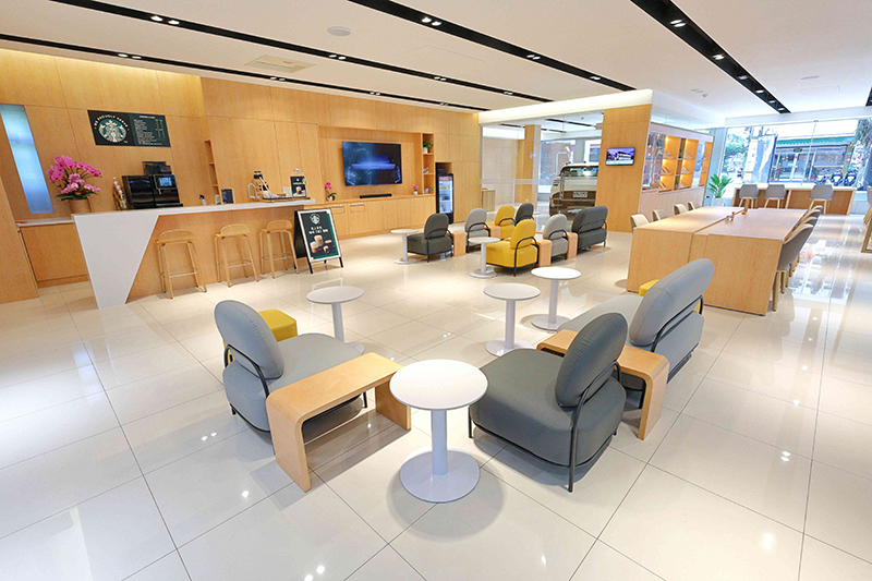 不同於以往對服務廠的印象,全新Kia土城服務廠打造如圖書館般的氛圍,高挑書牆陳列精心挑選包含現代文學類、哲學類等書籍,溫潤木質調與柔和燈光交織出靜謐雅緻的空間;搭配舒適座椅,讓車主在等待愛車保養時,能沉浸於閱讀的愜意時光,再加上由專人提供的星巴克咖啡服務,營造出兼具品味與溫度的休憩體驗,讓每一次到訪、等待愛車保養期間都成為一場身心放鬆、並從而獲得啟發的旅程。