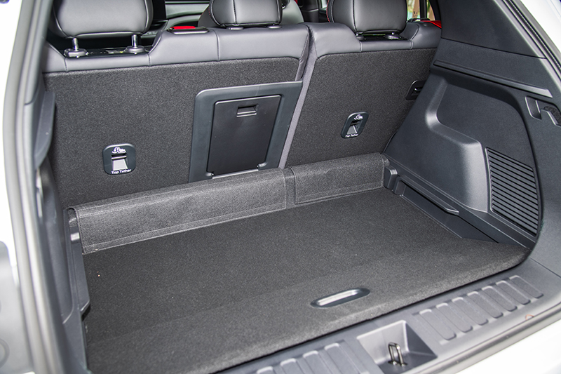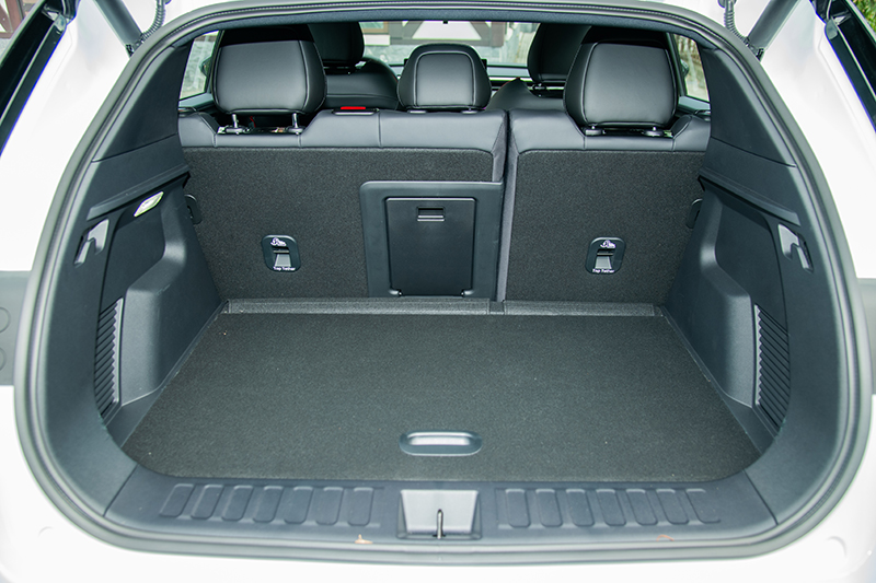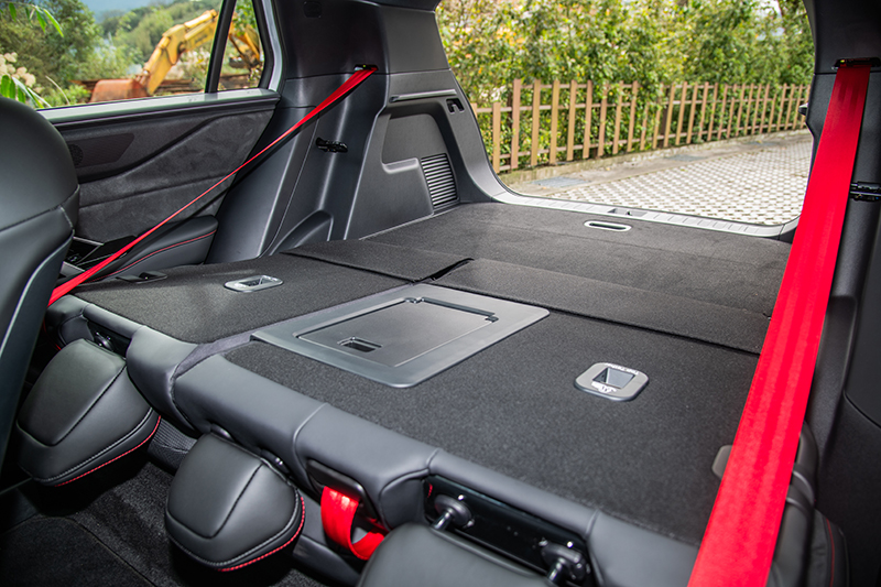 後廂標準容積320公升,傾倒後可達1,043公升,地板平整度不錯,並採雙層設計增加彈性運用。電動尾門結合UWB感應技術,只需站在後方感應區幾秒便會自動開啟,便利性到位。