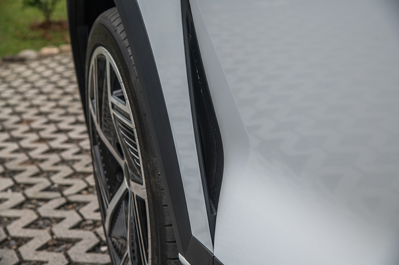 車頭的S-Duct空力導流設計,把超跑世界的語彙悄悄帶進來。氣流從車鼻被引導向上,再貼著車身流動,不只是視覺焦點,更是一種對高速穩定性的執著。搭配AGS主動式進氣格柵、Air Curtain氣簾與側導流孔,整體空氣管理邏輯相當完整,高速巡航時的穩定感來得自然。