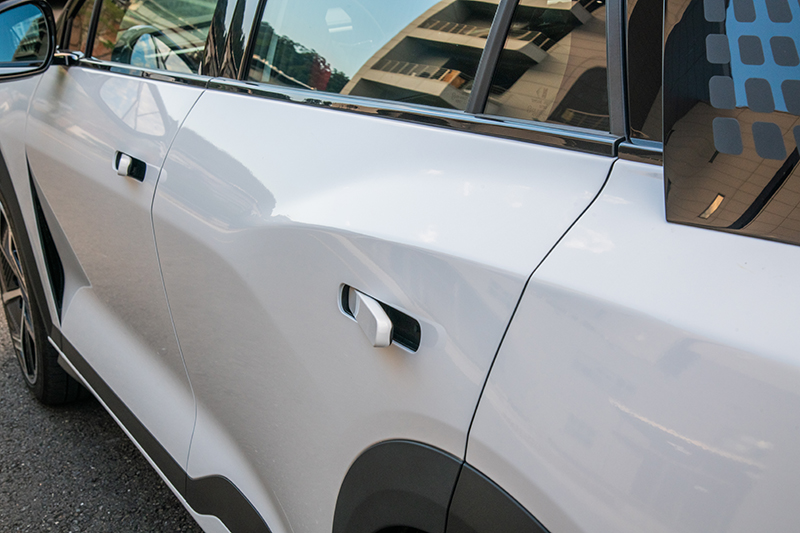 隱藏式門把讓車側更平整,並導入UWB超寬頻通訊技術,定位精準且具備抗中繼攻擊能力。科技不是噱頭,而是實際提升安全性的細節。遙控停車輔助也讓狹窄車位操作更從容。