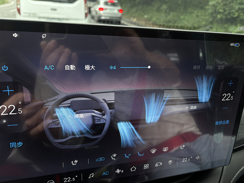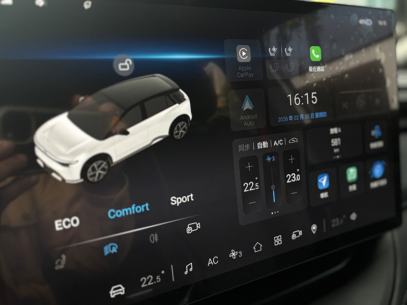 進到車內,整體氛圍偏向實用與科技的平衡。介面清楚、視覺不複雜,操作邏輯也算直覺,沒有太多需要重新適應的學習。細節裡有些貼近日常的小巧思,例如冷氣出風口支援左右搖擺設定,風向會隨著調整輕輕擺動,不是直直吹在身上,長時間行駛下來更舒服,也讓車內多了一點貼心的生活感。
