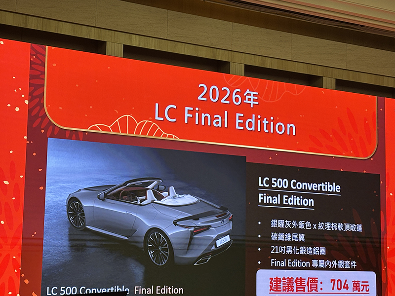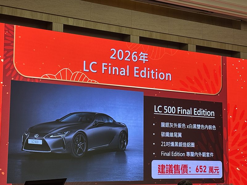 註7:LC Final Edition為限量生產車型,販售數量依原廠規劃配額為準,相關販售資訊、交車時程及實際供應狀況,請洽全台Lexus經銷商營業據點。