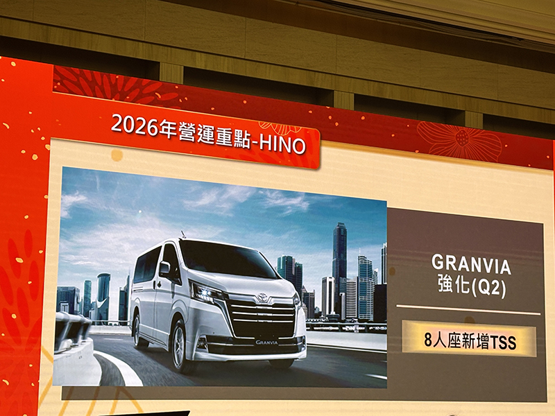 商用車方面,預計引進Granvia 8人座旗艦車型並升級TSS安全科技。同時,交通部試辦氫能巴士計畫也將於高雄上路,導入H2 City Gold氫能巴士,全年預計引進5輛,為新能源布局跨出實質步伐。