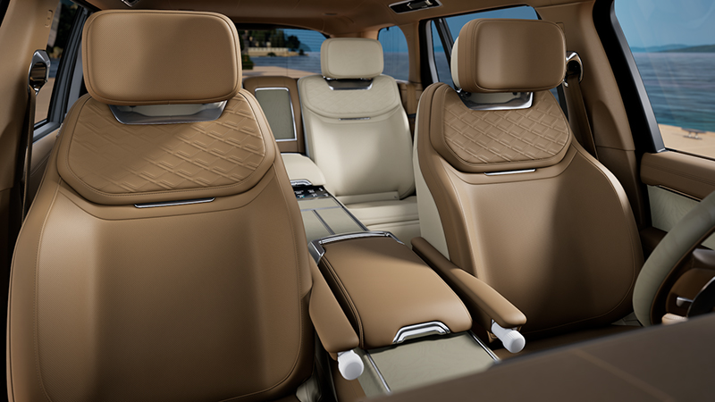 新年式 Range Rover SV 雙車型全面升級標配 SV Serenity 套件,輪框換裝 23 吋 10 幅式鍛造亮澤深灰與柯林斯青銅相間鑽石塗裝輪圈,以柯林斯青銅色為主調點綴車身優雅氛圍;雙前座椅以更為簡約俐落線條設計呈現精緻細節。首度導入全車四座沉浸式體感座椅,長軸車型另升級配備沉浸式傳感地板,包括副駕駛座及第二排乘客地板區域,皆能透過聲訊感受震動,達到沉浸式的乘坐體驗。