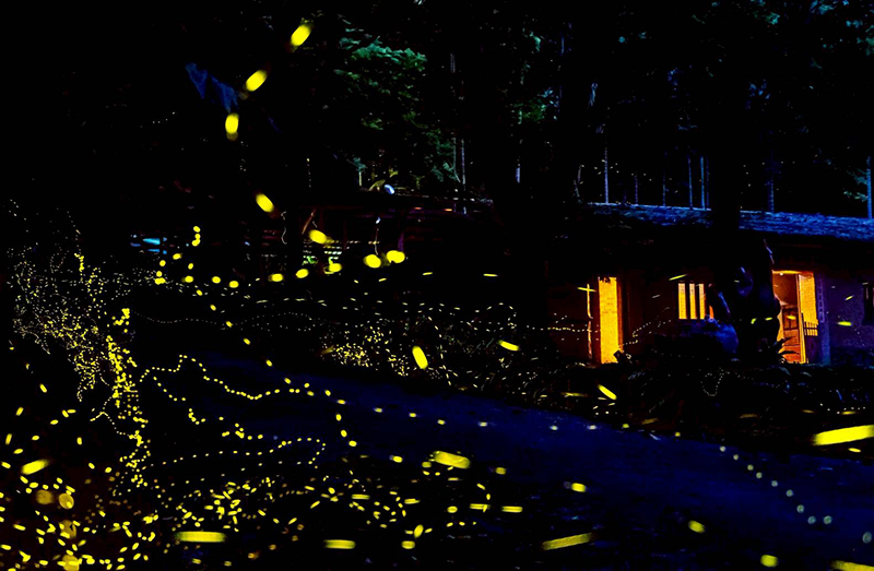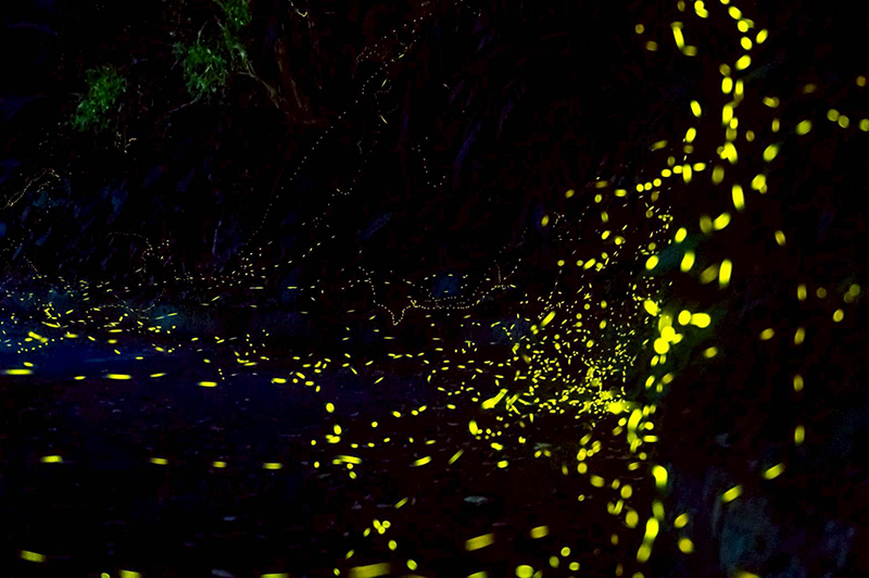 螢火蟲,地方人暱稱「火金菇」,是一種對環境極為挑剔的生物。牠們只棲息在無污染、無光害的純淨環境,也因此被視為生態健康的重要指標。在頭城農場長年復育與細心維護下,這片土地已成為多種螢火蟲的棲地,包括擬紋螢、紅胸黑翅螢、黃緣螢與山窗螢。當夜幕降臨,牠們同步閃爍,彷彿一場只屬於森林的燈光展演。