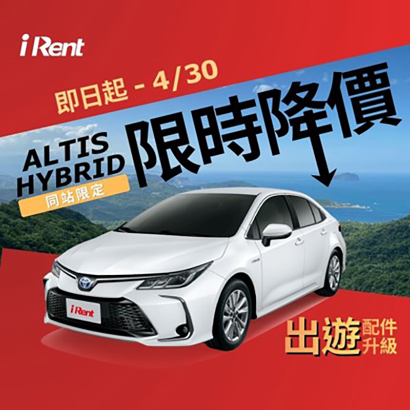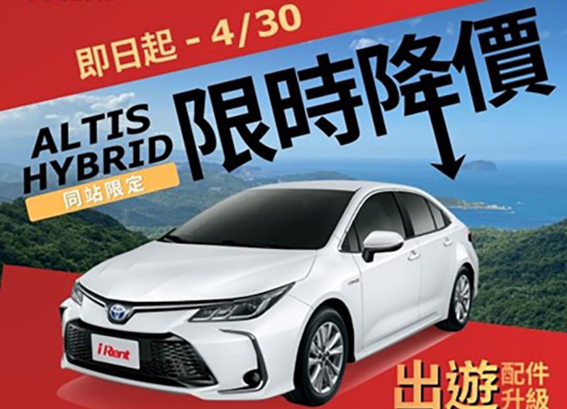 和運租車全車款限時優惠、iRent Toyota Corolla Altis Hybrid超殺回饋
