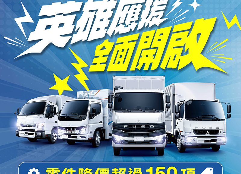 FUSO Taiwan持續以實際行動為頭家助力,同步推出【FUSO英雄回歸禮】及【零件好入手,裝備更從容】零件降價活動,提供車主好康優惠,並結合完善的售後服務支援,協助車主從容應對各項運輸挑戰,讓每一段行駛里程更加安心,替頭家省更多、跑更遠。活動詳情請洽全台 FUSO 授權經銷商裕益汽車各據點。