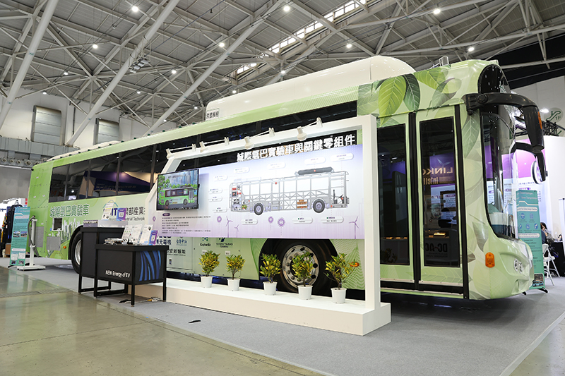 針對淨零排放趨勢,TARC主題館展出台灣首輛「16噸城際型氫能巴士」。該車提供長途運輸純電動車(BEV)載重受限與充電耗時的解決方案,具備「加氫15分鐘,巡航續航力可達420公里」的高效能 。這輛氫能巴士展現了高度技術整合的供應鏈,核心系統包含:燃料電池與電力轉換(工研院、台達電)、動力馬達(捷能動力)、鋰電池(台塑新智能)、車體底盤(順益、氫谷動能);電子控制系統包含:混合電力/整車/儲氫控制器(科飛、氫谷動能、工研院)及駕駛輔助模組(研華科技)等 。該車未來將促成氫谷動能取得首張UN R134氫能整車國際認證,助力臺灣從零件出口轉向整車系統整合輸出,與純電商用車並行,搶攻全球綠能減碳市場。