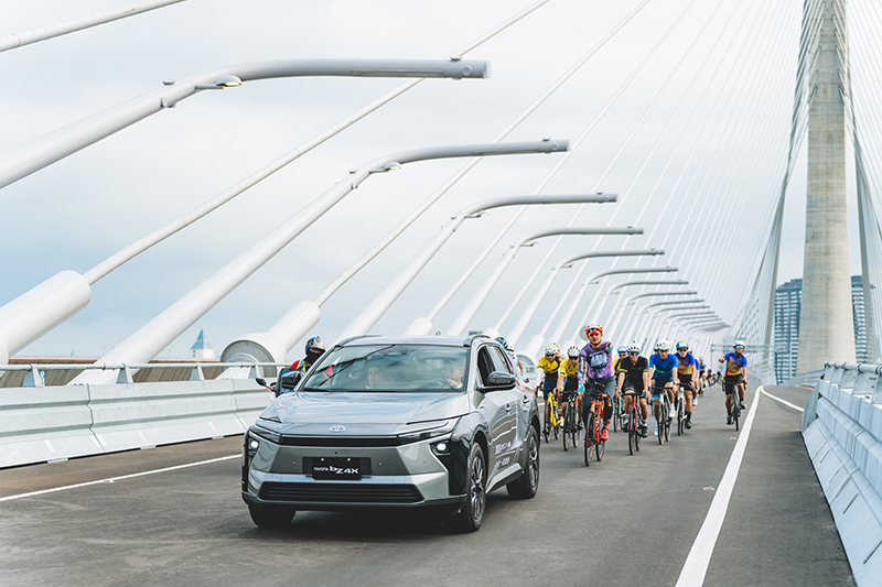 作為長期投入移動發展與新能源科技的品牌,TOYOTA此次以協辦單位之角色參與淡江大橋通車路跑暨自行車活動,呼應世界級基礎建設與創新移動科技並進的發展趨勢;並以「全球之最結合純電鉅作」為概念,將「全球最長單塔不對稱斜張橋」的地標意義與bZ4X純電車款的創新科技相互呼應,不僅展現品牌在電動化領域之成果,也進一步詮釋移動發展與永續未來之方向。