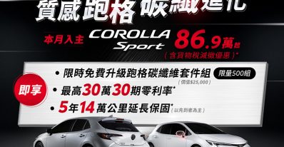 TOYOTA COROLLA SPORT鋒芒再起 本月入主享免費升級黑鑽石工藝碳纖維套組, 質感跑格極致進化!